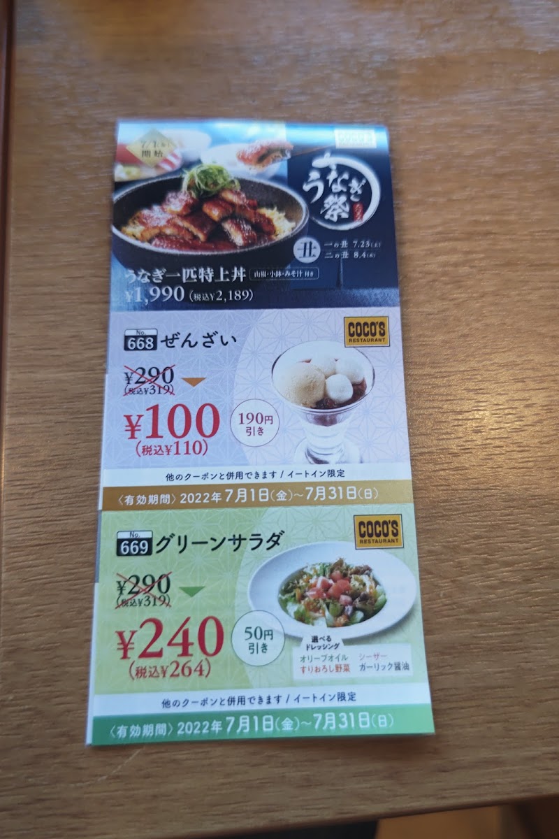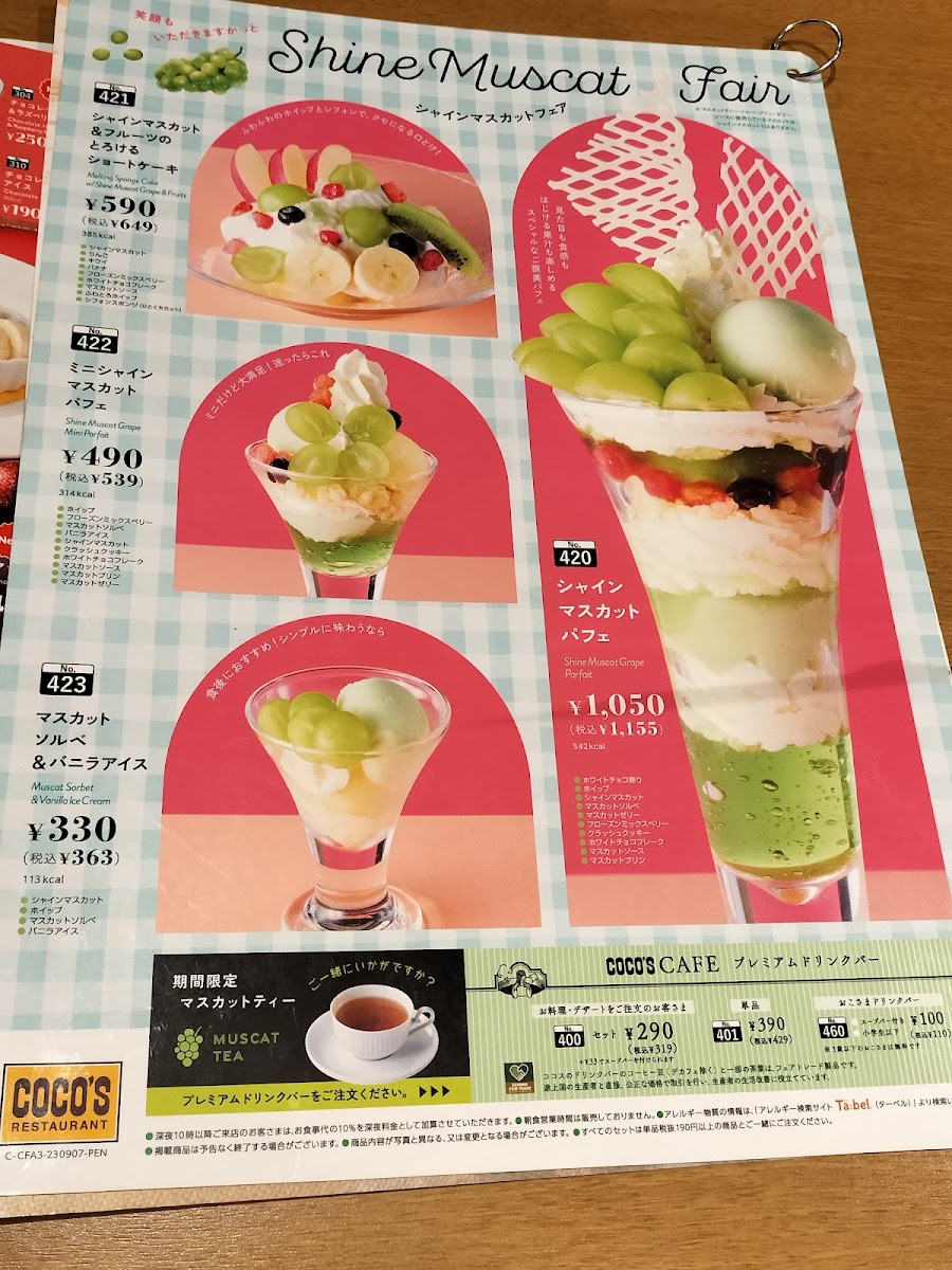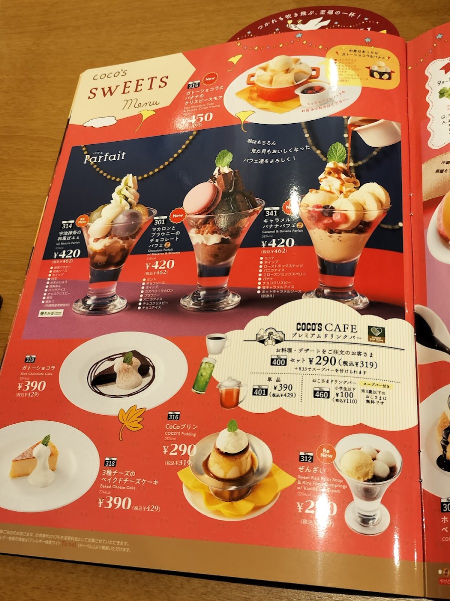 The menu also features a tempting まぐろ・サーモン・小柱の三色丼 for seafood enthusiasts. The weekend breakfast buffet is a highlight, providing a hearty array of dishes, including golden fried potatoes and tender sausages, all served in a cozy, welcoming atmosphere. With excellent price points, Coco's is a perfect spot for a casual meal that satisfies the whole family.